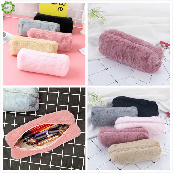 Hộp đựng bút chì và đồ trang điểm bằng vải lông có khóa kéo tiện lợi