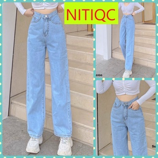 [ HÌNH THẬT!! ] QUẦN JEAN NỮ LƯNG CAO KIỂU QUẦN JEAN ỐNG RỘNG MÀU XANH NHẠT NITI LAI CUỐN CỰC PHONG CÁCH VẢI SIÊU DÀY