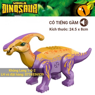 Đồ Chơi Khủng Long Parasaurolophus 2022 CÓ TIẾNG GẦM Phiên Bản Màu Tím Cam Jurassic World Hãng Lele