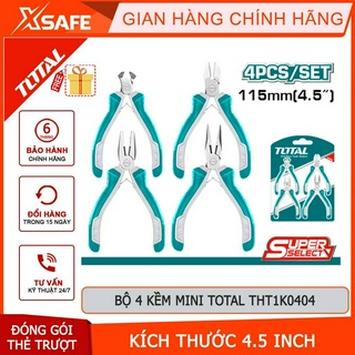 Bộ 4 kềm mini 4.5inch TOTAL THT1K0404 gồm kìm răng, kìm cắt, kìm cắt đứt, kìm mũi dài, tay cầm hai màu - chính hãng