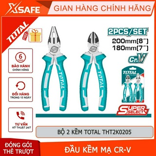 Bộ 2 kềm răng và kềm cắt TOTAL THT2K0205 đầu kìm được mạ CR-V đánh bóng chống gỉ, tay cầm hai màu - chính hãng