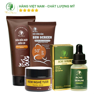 Bộ trắng da, sạch nám mụn, chống nắng chuyên sâu Wonmom (1 Sữa rửa mặt+ 1 Kem nghệ tươi+ 1 Serum mụn + 1 Kem chống nắng