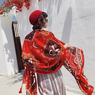 [HOT HOT] Khăn Choàng Chống Nắng Mùa Hè Đi Biển, Khăn Boho Thổ Cẩm Dân Tộc Du Lich Màu Đỏ (180cm*90cm) - KLĐB006