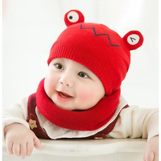 Set Mũ Len + Khăn Choàng Cổ Dễ Thương Thời Trang Cho Bé Sơ Sinh