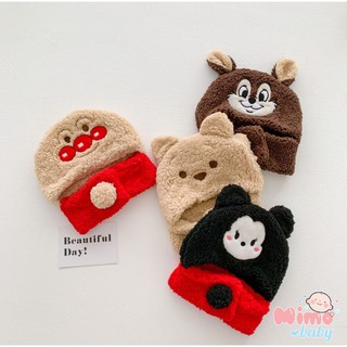 Mũ len lông cừu liền khăn hoạt hình dễ thương cho bé (2-8y)