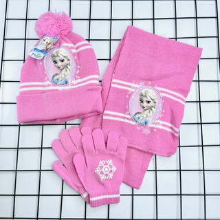 Khăn len choàng cổ, mũ len cho bé, găng tay. Khăn mũ bộ hình elsa hồng siêu đáng yêu