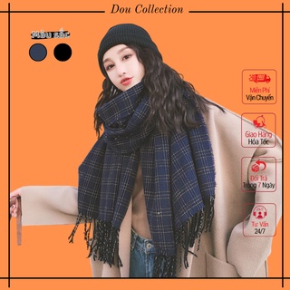 Khăn Choàng Len Cashmere Giả Hai Mặt Dày Dặn Họa Tiết Caro Phong Cách Âu Mỹ Ấm Áp Mùa Thu Đông Cho