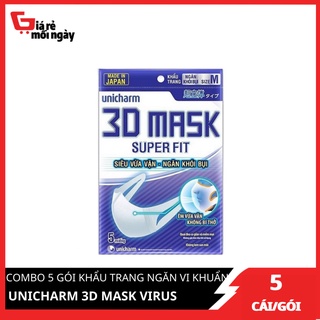 Combo 5 gói Khẩu trang ngăn vi khuẩn Unicharm 3D Mask Virus Block 5 cái/góiX5