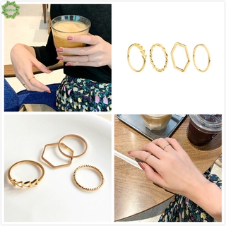 Set 4 Nhẫn Đeo Ngón Tay Thiết Kế Hình Học Đơn Giản Độc Đáo