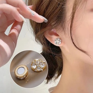 1 Cặp Khuyên Tai Nam Châm Tròn Đính Đá Giả Thời Trang