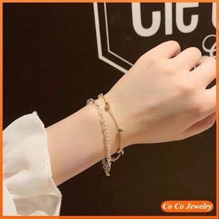 Gypsophila Vòng Tay Kim Loại Mở Hình Học Kim Cương Hàn Quốc Cocojewery