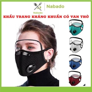 Khẩu trang vải kháng khuẩn có van thở và kính chống giọt bắn, bụi, chống nắng cao cấp