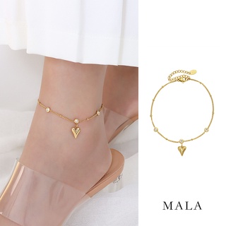 Lắc chân MAYEBE LAVEND bằng thép titan mạ vàng 18k mặt hình trái tim đính đá pha lê phong cách Hàn Quốc