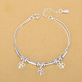 Lắc Chân Hình Cỏ Bốn Lá Màu Bạc Dễ Thương