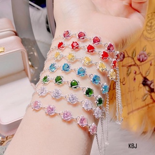 Lắc tay nữ, lắc tay bạc ta, kết hợp 5 ổ đá vuông, hàng sáng bóng đẹp