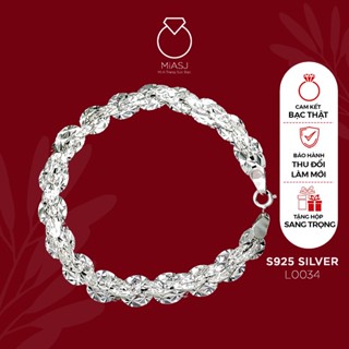 Lắc tay nữ bạc Ý S925 MiASJ dây xoắn lá bạc cân móc máy kim cương cao cấp