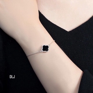 Lắc tay dây kép cỏ 4 lá chơ nữ hàng hot trend- chuẩn bạc