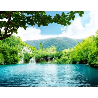 Tranh dán tường 3D cảnh thác nước hùng vỹ hòa với khung cảnh thiên nhiên xung quanh đẹp đến kinh ngạc