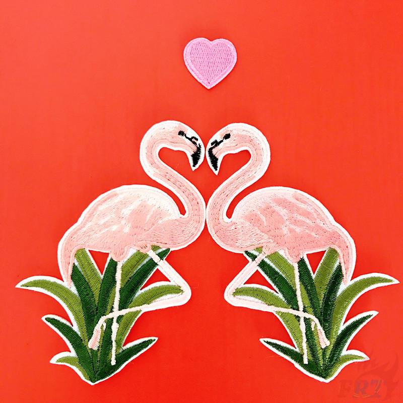 Miếng vá ủi/thêu hình chim hồng hạc xinh xắn trang trí quần áo DIY
