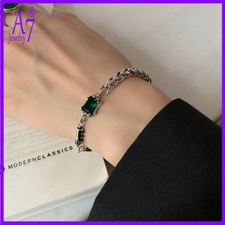 Vòng Tay Bạc Thái Lan Mặt Vuông Rỗng Đính Đá Ngọc Lục Bảo A7 Thời Trang Cho Nữ