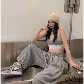 Bộ Áo Thun Không Tay Hở Lưng + Quần Dài Eo Cao Dáng Rộng Cho Nữ Khiêu Vũ