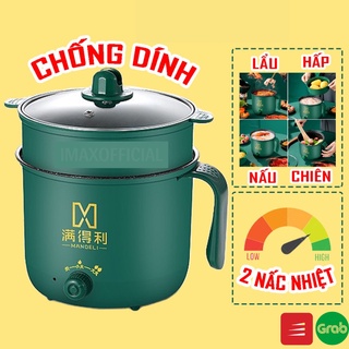 Nồi lẩu điện đa năng chống dính 2 nấc nhiệt kèm giá hấp có tay cầm 18 cm - Nồi lẩu hấp 2 tầng, ca nấu mì, nấu cơm 1,8L