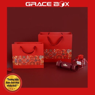 Túi Giấy Quà Tặng Màu Đỏ Các Dịp Lễ Tết - Hoa Văn Lễ Hội Ngũ Sắc May Mắn - Siêu Thị Bao Bì Grace Box