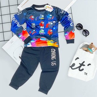 Bộ thun áo croptop quần thể thao Among Us cho bé gái