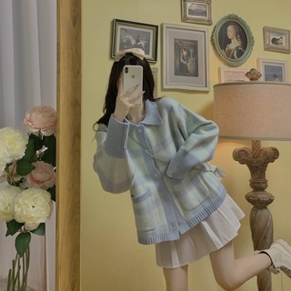 Hàng Sẵn_ Áo khoác len cardigan áo len nữ màu xanh sữa dịu dàng