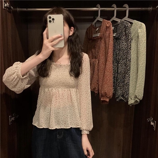Áo tay dài BH in họa tiết hoa phong cách mùa xuân Hàn Quốc 2021 thanh lịch cho nữ