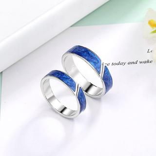 *2Pcs Van Gogh Blue Starry Sky Open Ring Star Moon Always Thinking You Lover Ring