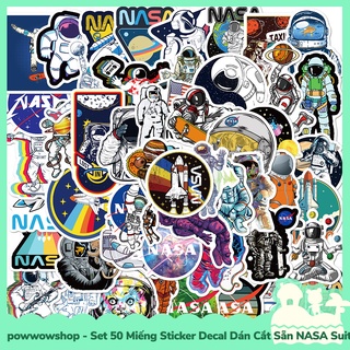 [Sẵn VN - Hỏa Tốc] Set 50 Miếng Sticker Decal Cắt Sẵn DIY Dán Trang Trí Vật Dụng Mẫu NASA Suitcase Water Cup