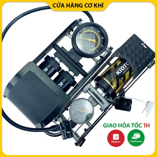 Bơm xe máy đạp chân - bơm xe đạp chuyên dụng bơm khỏe nhanh đồng hồ đo chính xác 2 ống xilanh