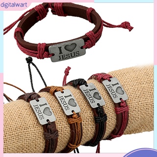 Vòng tay giả da mặt khắc chữ I Love Jesus độc đáo
