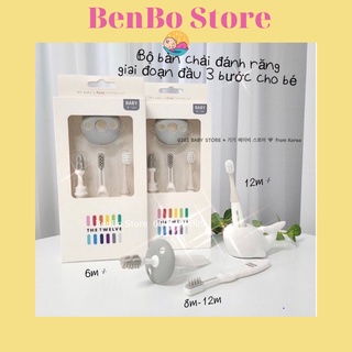 Bàn Chải Đánh Răng Hàn Quốc cho bé tập đánh răng, set 3 giai đoạn -Chính Hãng TWELVE