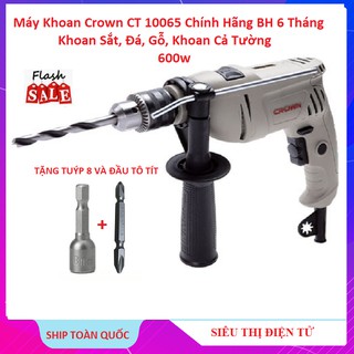Máy Khoan Chính Hãng Crown CT 10065, Khoan 600w Sắt, Đá, Gỗ, Khoan Tường - Tặng Tuýp 8 Đầu Tô Vít BH 6T