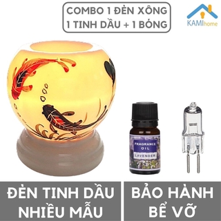 Combo Đèn xông tinh dầu hình Tròn (Chọn Mẫu) + 1 bóng đèn + 1 Tinh dầu hương thơm đuổi diệt muỗi