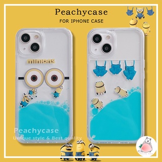 Ốp Điện Thoại Nhựa PC Cứng Trang Trí Cát Kim Tuyến Hình Minions Cho iPhone 14 13 12 Pro Max 11 Xr 6 7 8 Plus Xs X