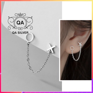 Khuyên tai bạc 2 lỗ XO dây xích bông tai vành nữ S925 CHAIN Silver Earrings QA SILVER EA220701
