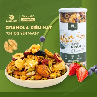 Granola siêu hạt 15% yến mạch TANU NUTS, hạt ngũ cốc granola ăn kiêng giảm cân không đường tốt cho gym, yoga hũ 500g