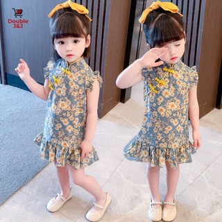 Đầm Sườn Xám In Hoa Cho Bé Gái 2021 Mới