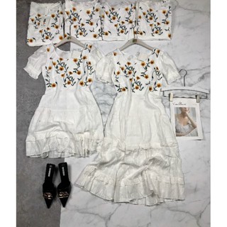 ĐẦM TẦNG ĐÍNH HOA TRẮNG