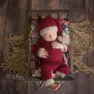 Haha Bộ Áo Liền Quần Dài Tay Kèm Mũ Muslin Chụp Ảnh Giáng Sinh Cho Bé Trai Sơ Sinh G