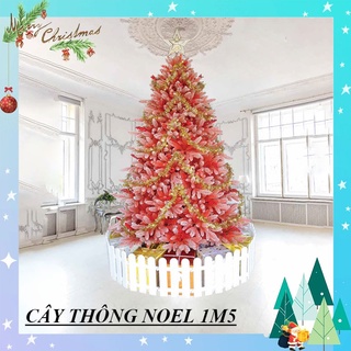 Cây thông noel 1m5 PE màu đỏ, cây thông noel phủ tuyết gắn trái đỏ 1m5 – cây tự động trang trí giáng sinh