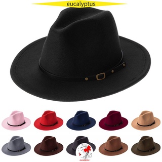 Mũ phớt vải nỉ vành rộng đính khóa thắt lưng kiểu cao bồi vintage thời trang thu đông cho nam nữ