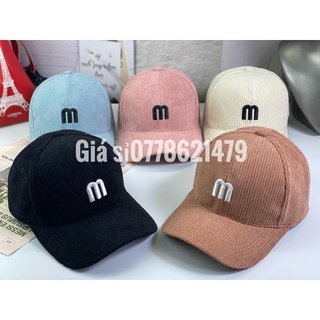 mũ kết lưỡi trai - nón lưỡi trai hàn quốc nhung đũa thêu Chữ M trend thời trang