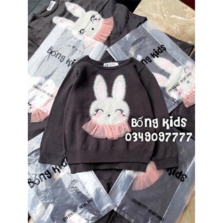 Áo Len Bé Gái Thỏ Nhung Xám Nâu HaM