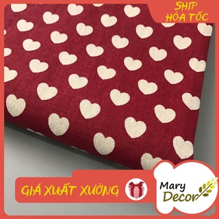 Vải linen họa tiết Trái tim trắng nền đỏ V-I06
