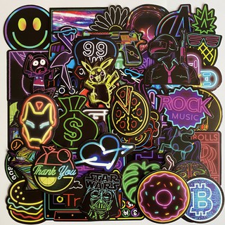 50 Sticke chống nước màu neon dán mũ bảo hiểm, vali 50 hình dán graffiti neon dán cốc nước xe hơi, máy tính xách tay