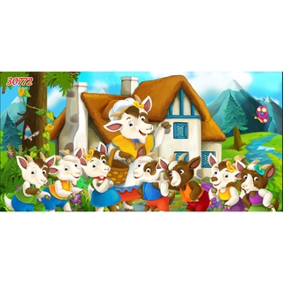 Tranh 3D Dán Tường Phòng Trẻ Em Nhiều Chủ Đề Ngôi làng trẻ thơ, gia đình dê, lợn, nông trại vui vẻ